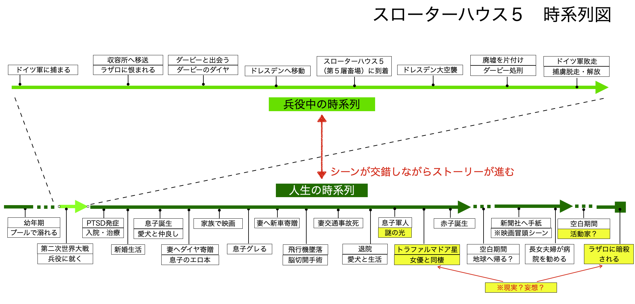 - そのため、視聴者は回想シーンを交互に見ているに過ぎない。