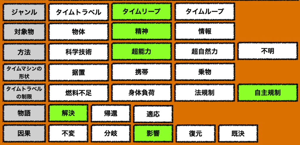 本作のタイムトラベル(タイムリープ)は物語のオマケ程度に過ぎない。そのため設定はガバガバだ。ゆる過ぎて考察の意味は無いかもしれないが、あえてする。