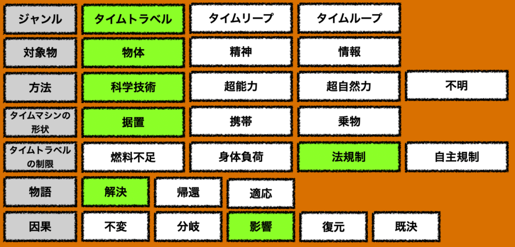 - タイムマシンは据置型で、収容した人間や物資を転送する。