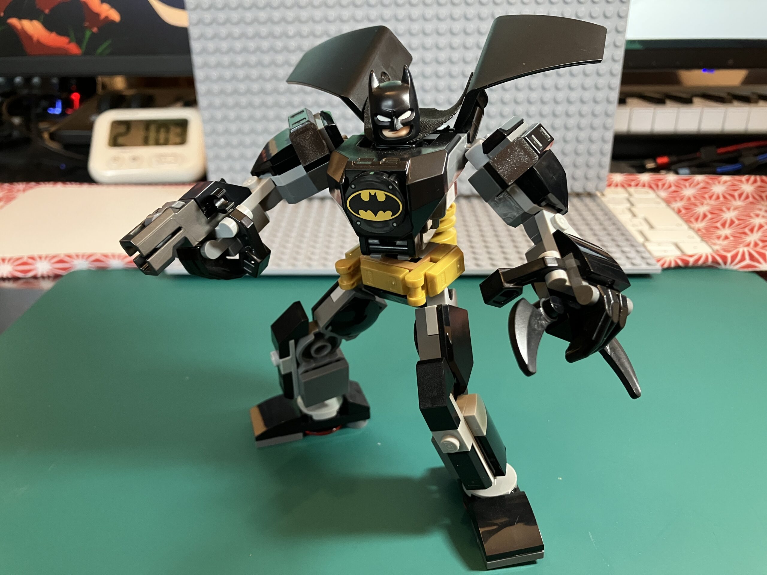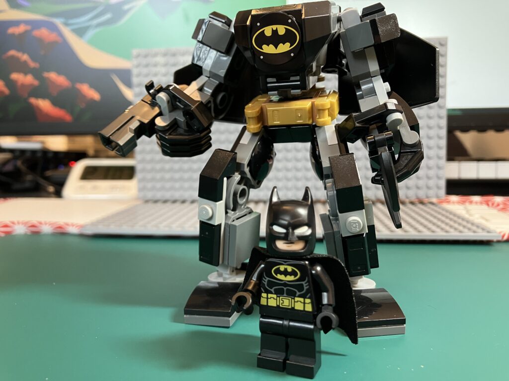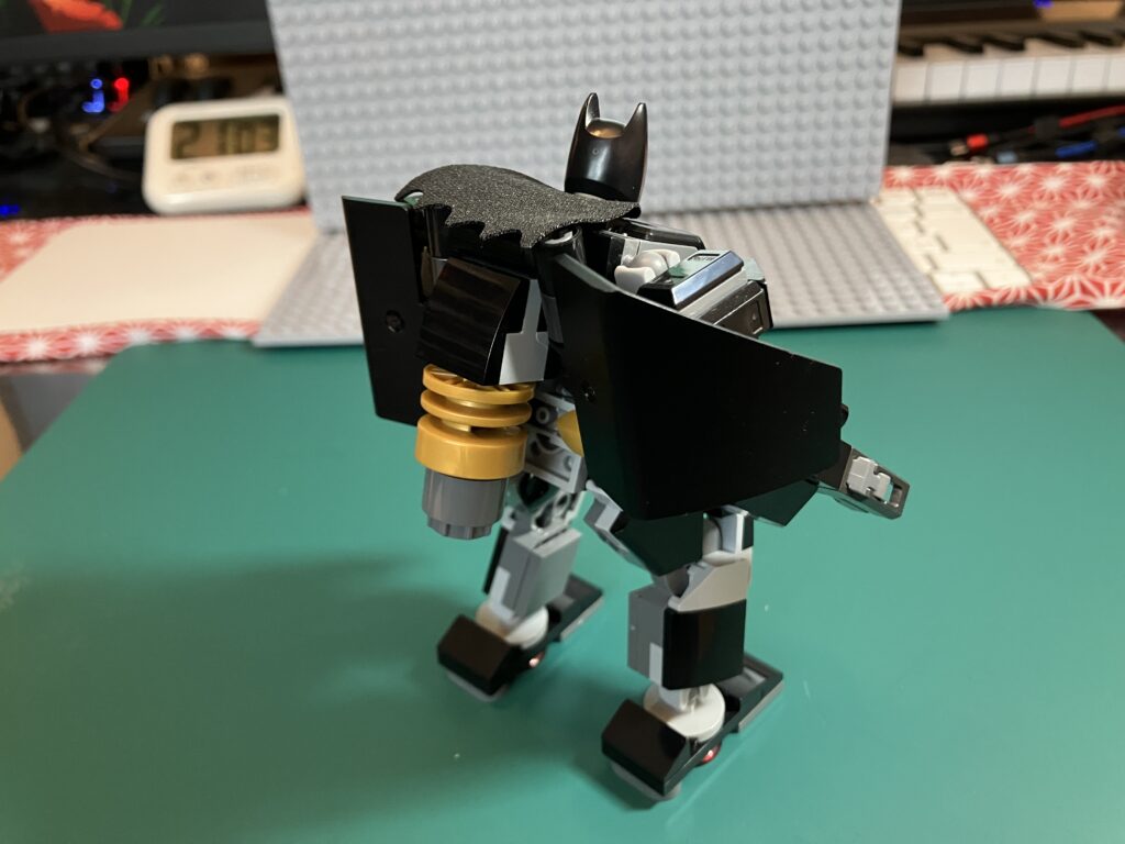 LEGO:バットマンのメカ・スーツ 玩具 2025.08.222025.11.06 アマゾンで購入した市販品。背面にはマントのようなパーツが有ってカッコ良いのだが、ヒジとヒザが曲がらない構造なので、いまいちポーズが決まらない(^^;)。 パイロットは当然、バットマン。 お気に入り度 ★★☆☆☆