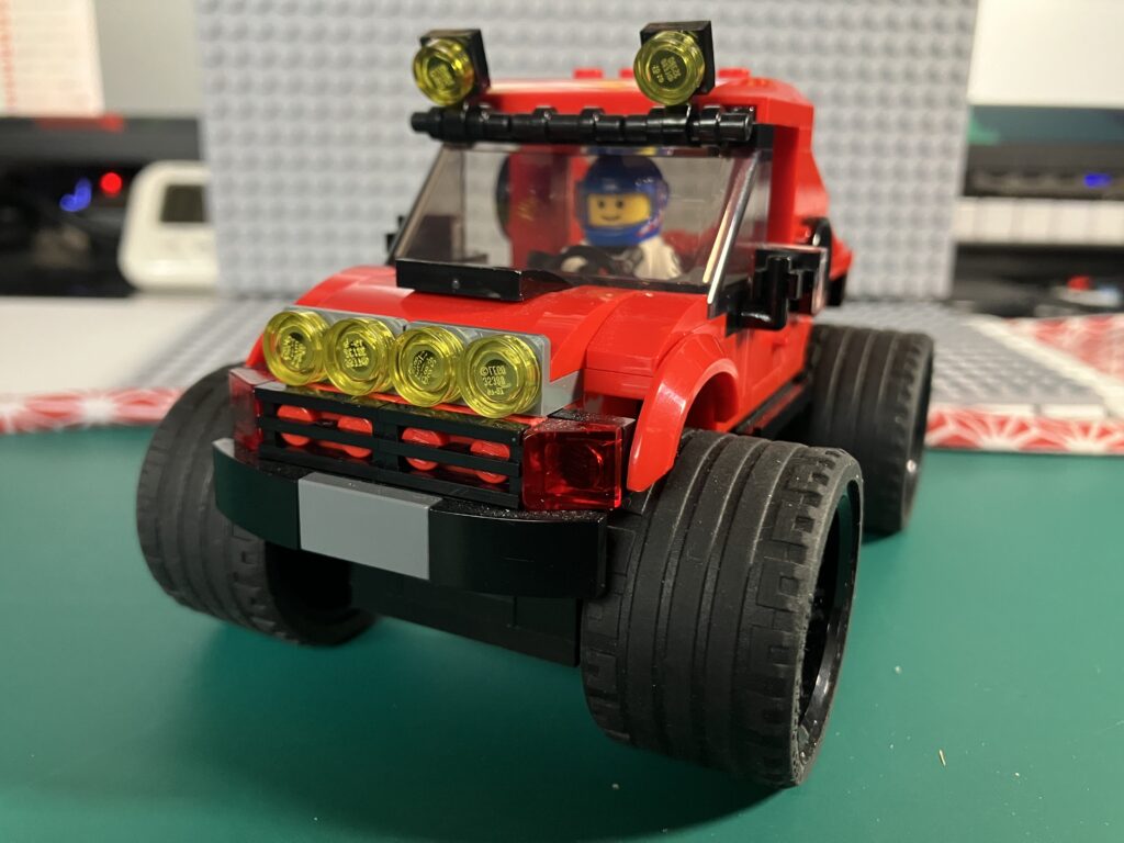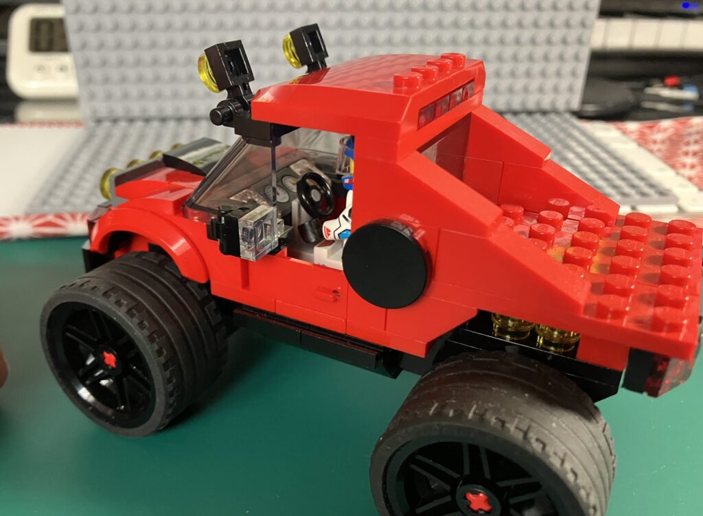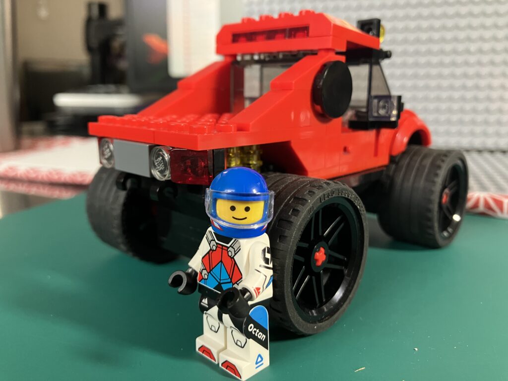 派手なスーツのミニフィグが搭乗。スーツ脚部に書かれたスポンサー名の「octan」は、LEGOの架空の石油会社らしい。