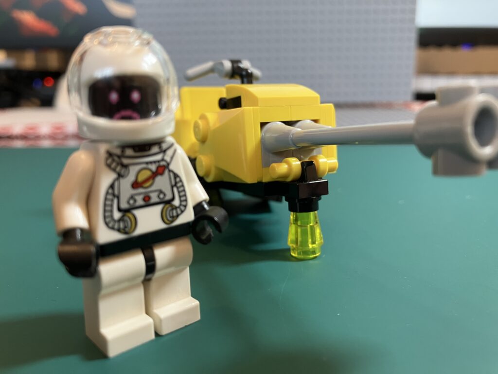 操縦席には、黒い顔の宇宙服パイロットのミニフィグ。