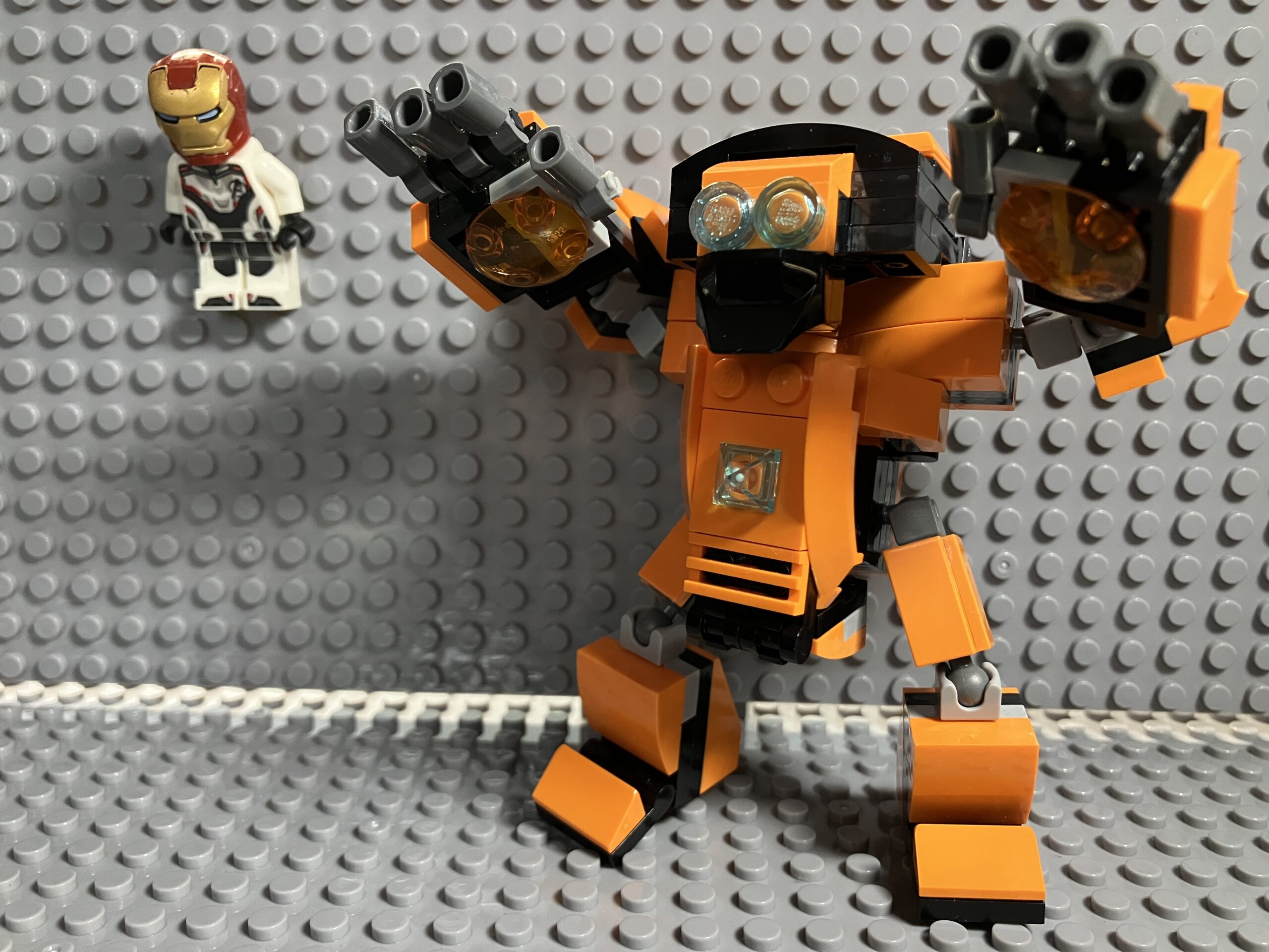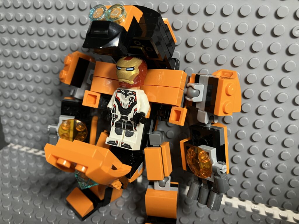 LEGO:アイアンマンmk36/オレンジカラー 玩具 2025.10.152025.11.01 公式サイトの説明書を参照して、黒ベースで仮組。 オリジナルと同じではつまらないので、オレンジ色に変更してみた。 ブックオフで見つけたアイアンマンのミニフィグを搭乗させて完成。 お気に入り度 ★★★☆☆