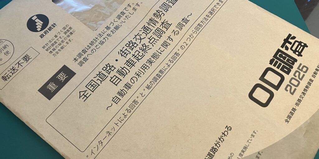 調べてみると、国土交通省が5年に一度実施している交通情勢の調査のようで、このハガキが来るまでは知らなかった。それから数日後には封筒が届き、その中身は協力依頼と回答方法の案内だった。